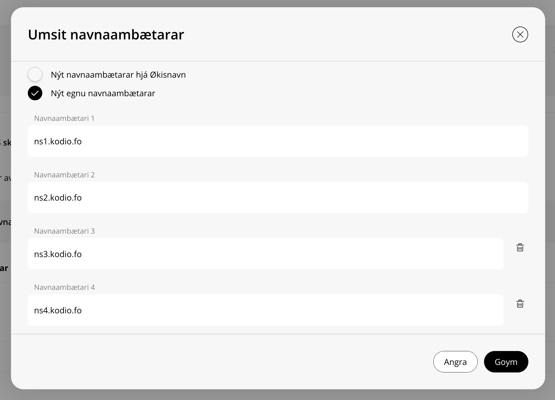 2. Vel økisnavnið tú ynskir at broyta navnaambætara á