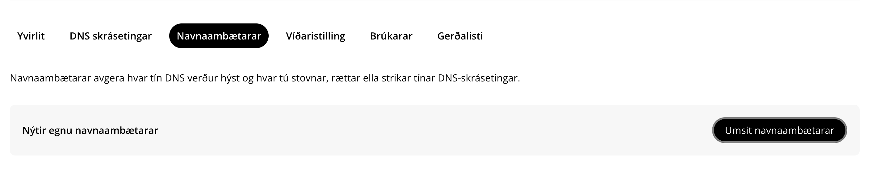 Tú kanst peika á okkara navnaambætarar. Um tú hevur eitt føroyskt økisnavn, verður hetta gjørt inni á økisnavn.fo.